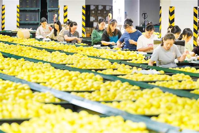 近日,潼南區雪王農業有限公司車間內,工人在包裝檸檬鮮果。 作為重慶百億級檸檬產業集群的核心區,潼南已構建起集育苗、種植、研發、加工、物流、銷售於一體的完整產業鏈,種植面積達32萬畝,建成標准化果園100余個。…