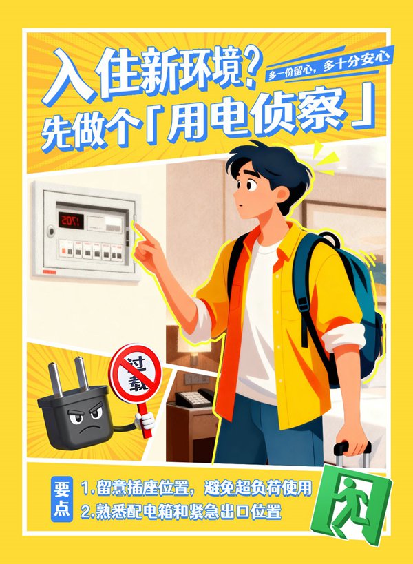 國慶、中秋雙節將至,家家戶戶團聚出游,用電安全可不能忽視!離開家前記得拔掉電器插頭,關閉總電源,避免雷雨天氣引發隱患﹔露營用電選擇戶外專用移動電源,照明燈具懸挂遠離帳篷布料﹔團聚時刻注意,不超負荷使用插座,遠離可燃物,使用合格電器產品,杜絕安全隱患。(全昕)
