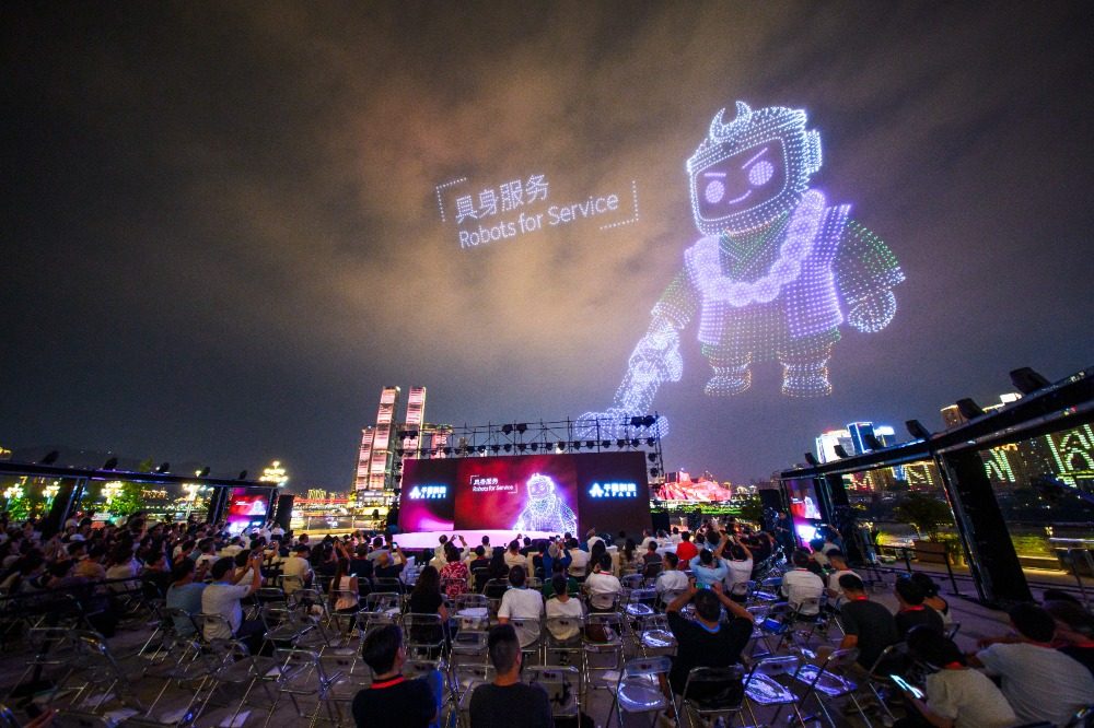 “未來AI能做啥子?”明亮的文字在江上顯現,既揭示此次無人機燈光秀的主題,也問出了全場觀眾們藏在心底的疑問。