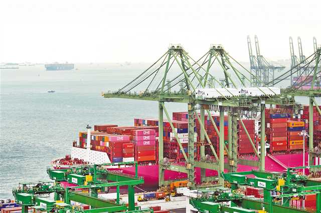 11月6日,新加坡帕西班让码头,世界各地的货船在码头进行集装箱的转运。