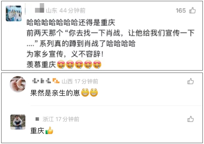 真是咱重庆“亲生的”崽儿,积极响应家乡的“call”,一“摇”就到,有速度。视频一出,热度瞬间飙升,网友纷纷留言:“还得是重庆,第一个把肖战叫来的”!