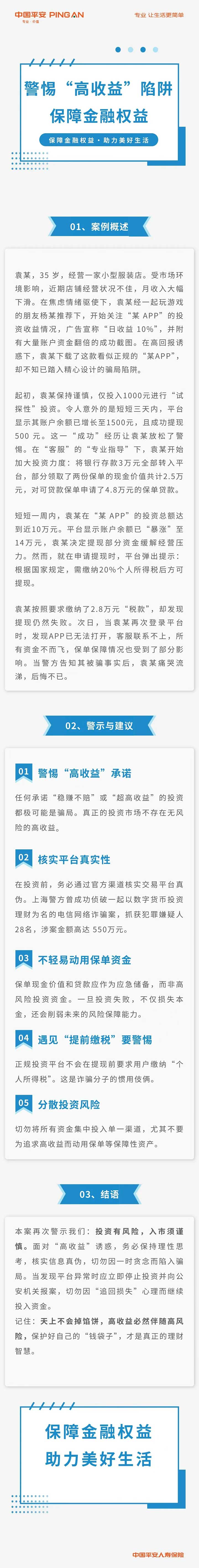 平安人寿重庆分公司:警惕“高收益”陷阱 保障金融权益