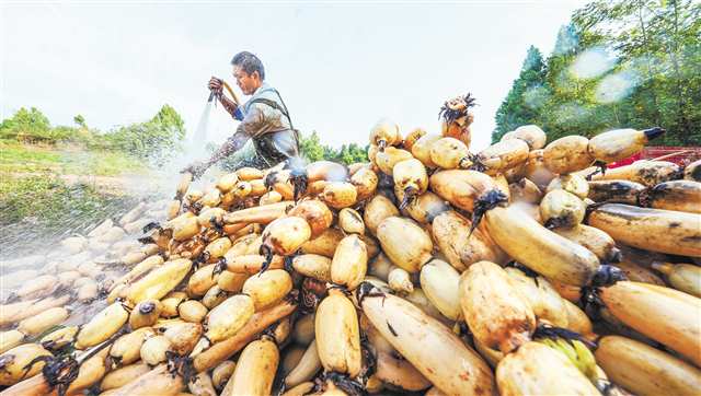 近年来,砚台镇以产业振兴为抓手,引入种植大户发展莲藕2000余亩,并建立起莲藕加工厂和观赏荷花基地,形成夏赏荷花秋收莲藕的循环发展模式。同时,按照“公司+基地+农户”的经营模式,推动产业联农带农,有效带动农户创收增收。(特约摄影 龚长浩/视觉重庆)