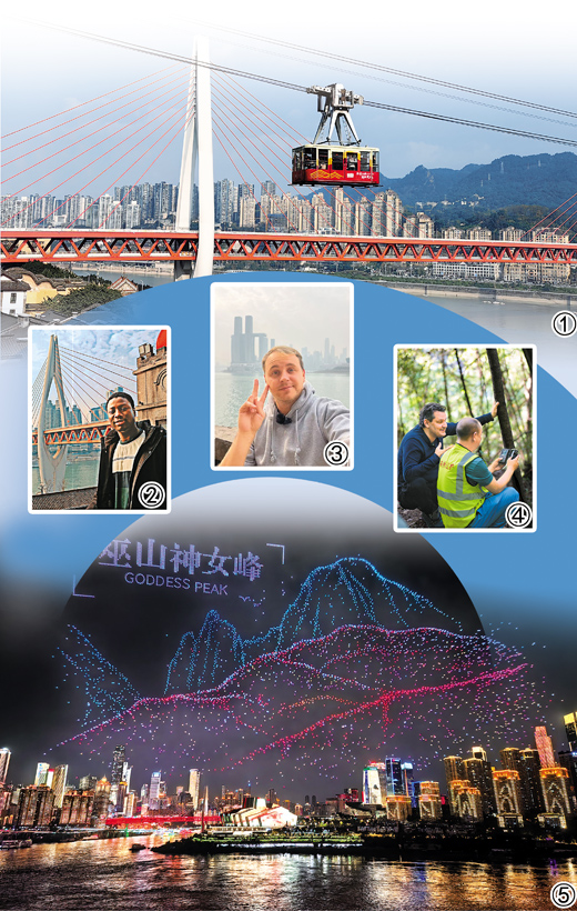 马丁也喜欢新场景。“有的玩法外国人完全想象不到。”马丁说,位于朝天门的地标建筑重庆来福士,有一个高空体验项目“云中漫步”,“系着安全绳在上头走路,风景非常棒”。还有在防空洞里吃火锅,“很酷,很有意思的体验”。这两年,重庆每逢周末和节假日都会在两江交汇处进行无人机表演,5000架无人机排列的空中造型与立体的城景、夜景、江景融合在一起,“我的妈妈来看过,很魔幻,很震撼!”这些新场景、新活动还激发了消费。“我的这家餐厅就在最佳观赏点,每逢无人机表演,上客率就有明显提高,景观位非常受欢迎。”马丁说。